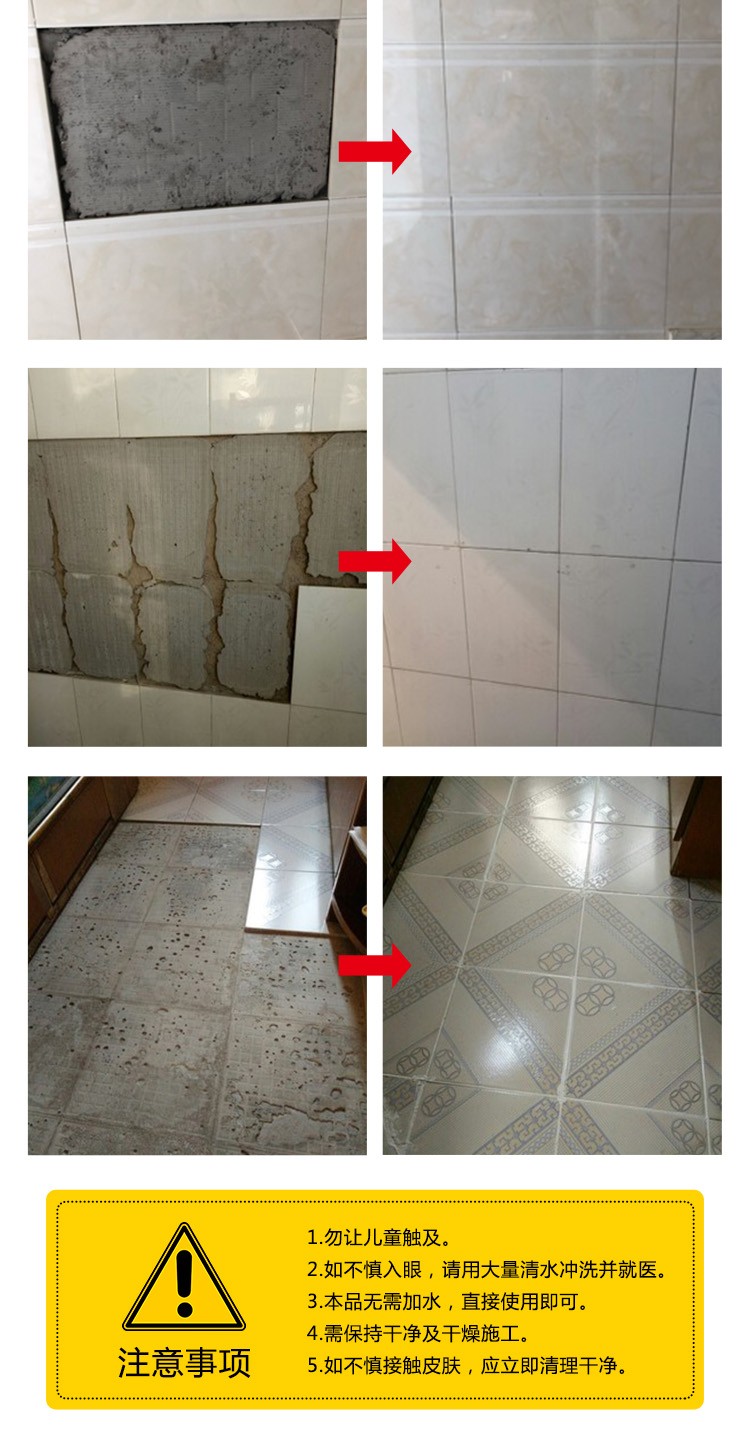 问题八瓷砖脱落用什么胶 市场上常见的瓷砖粘结胶粘剂包括立时得快速胶粘剂JD503瓷绝滚砖粘结剂和903多功能建筑胶这些粘结剂各有特点,如快速固化可调整粘贴时间和高粘结强度等根据墙体基层的状况和经济成本,可以选择合适的粘结剂进行修复问题九有什么好办法把掉下来的墙砖粘好,求助。